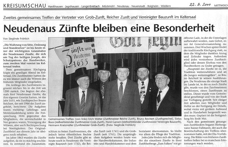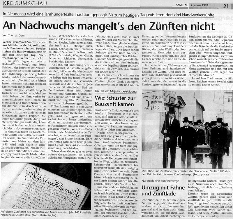 Die Anfänge des Zunftwesens in Neudenau reichen zurück bis ins